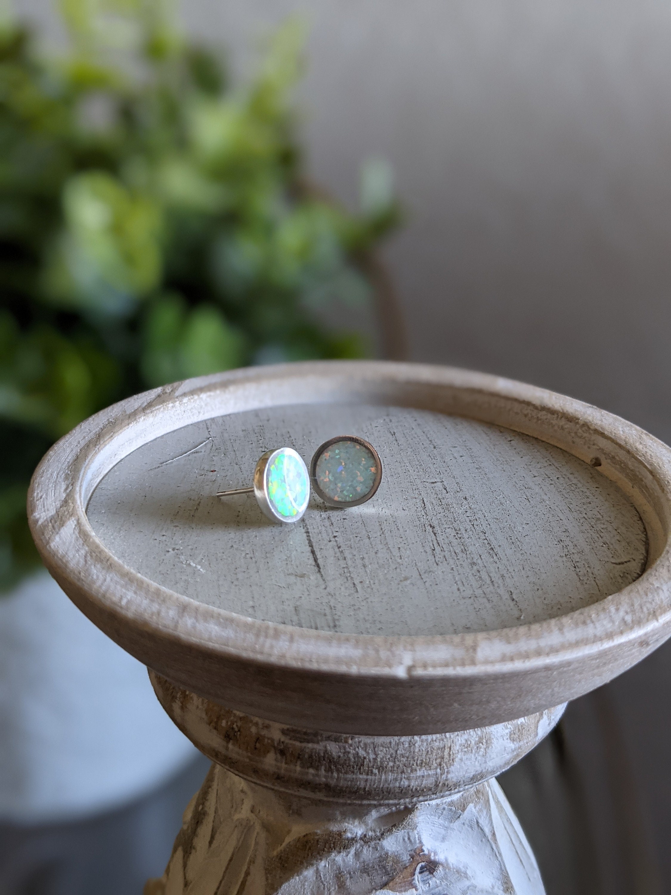 Synthetic opal is a great option that looks amazing with sterling silver. I am happy to add these Sterling Silver and Solid Synthetic Opal Stud Earrings to my line. The setting is 10mm across and the solid synthetic opal is flush with the silver on the face. These are dainty yet modern. The shimmer of the synthetic opal and the silver is gorgeous and makes them pop so much. A nice mixture of shined sterling silver and a rainbow opalescent shine. I just love how they make a statement and yet are so simple. Actual Sterling Silver, not just silver color.