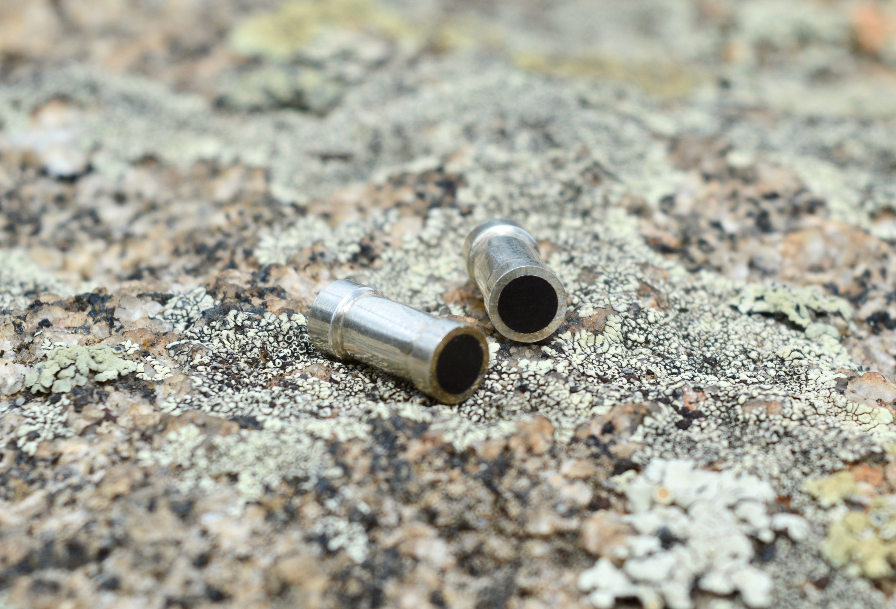 My highest seller. I love these gauges. Beautiful flared plug/gauges of African (Black) Ebony lined with Sterling Silver. The ebony is flush with the silver on the faces to create a beautiful contrast of black and silver, dark wood grain and bright shine.