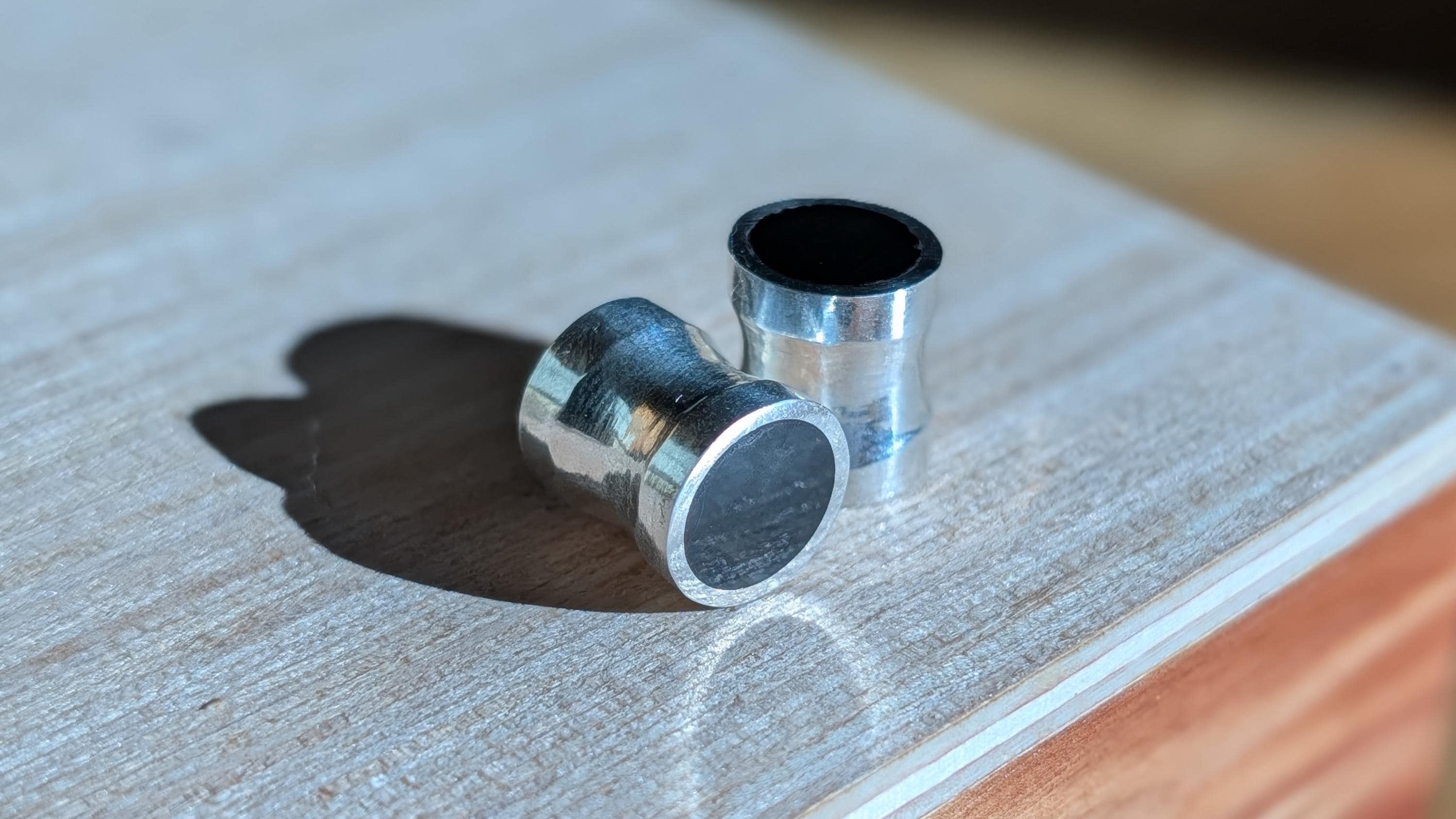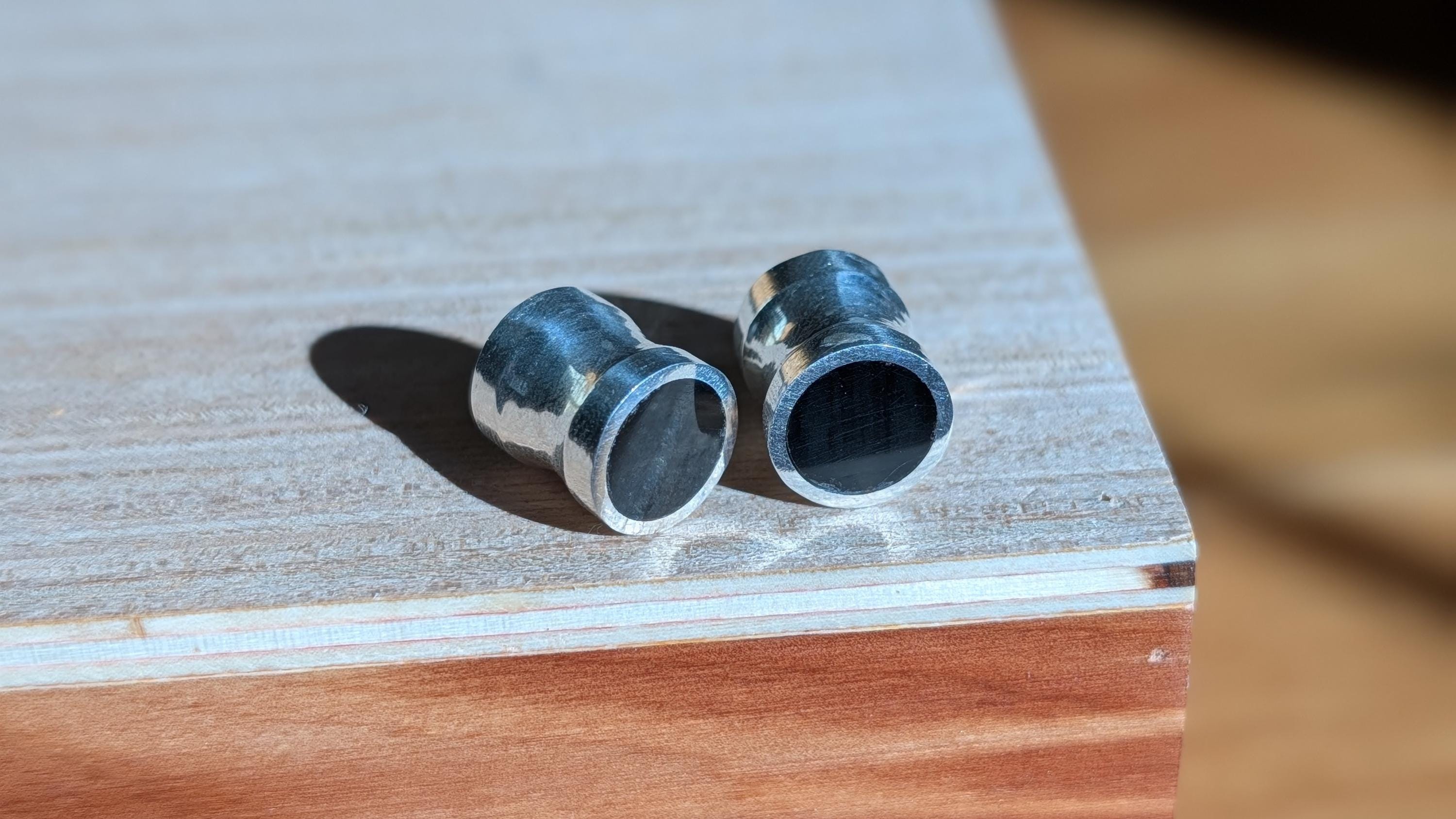 Slight flare with the silver and small groove in the center fit to the gauge size.