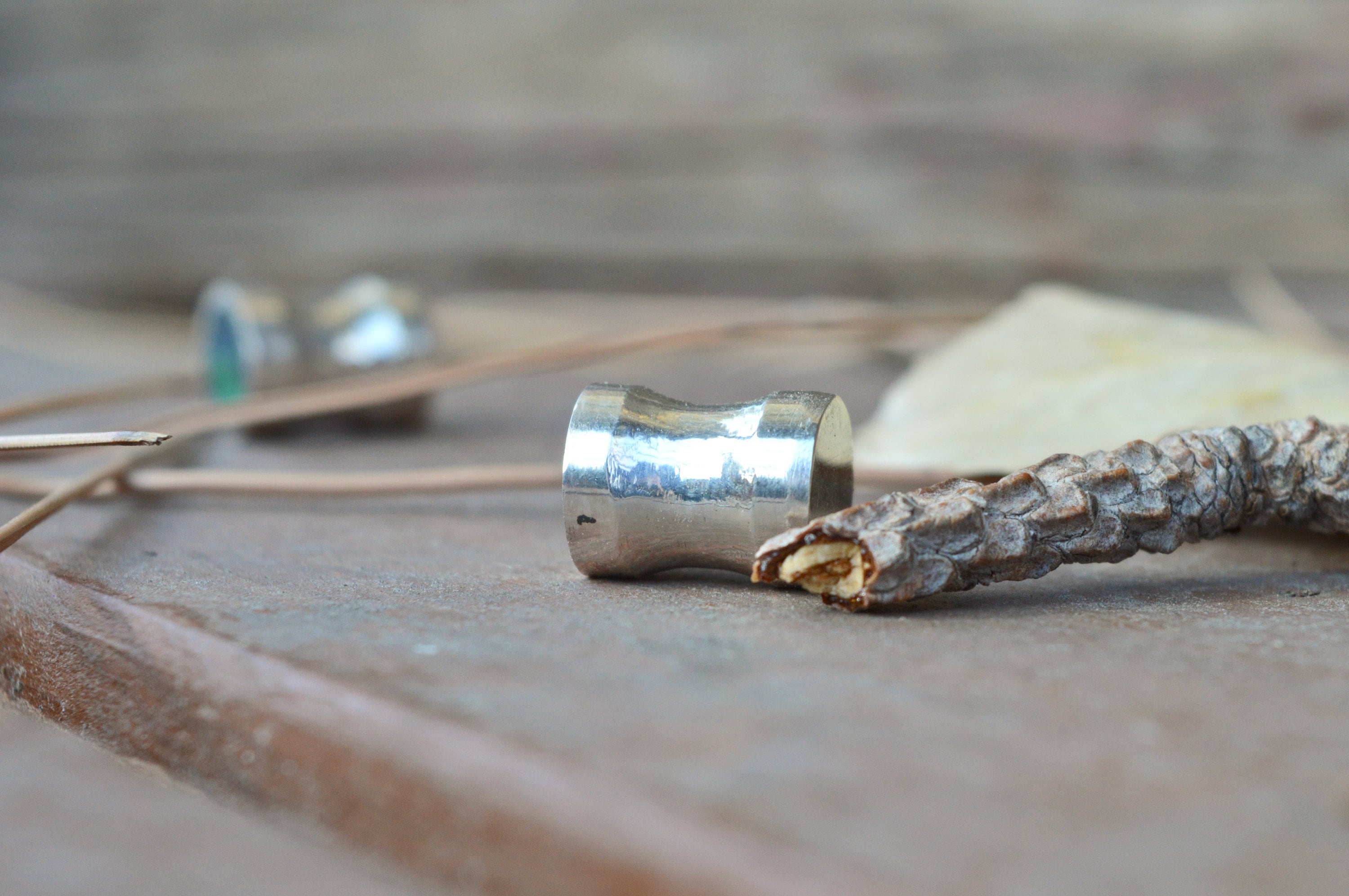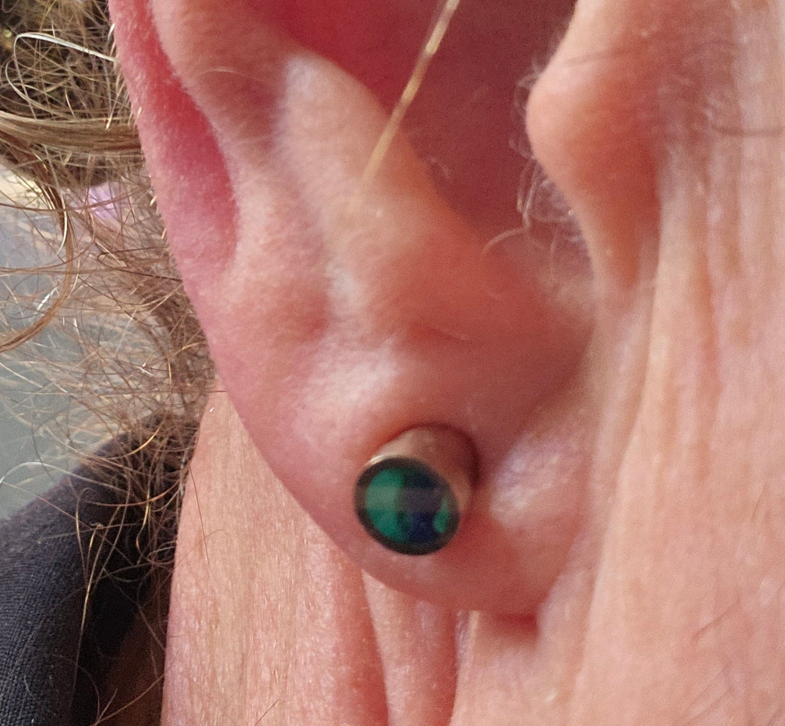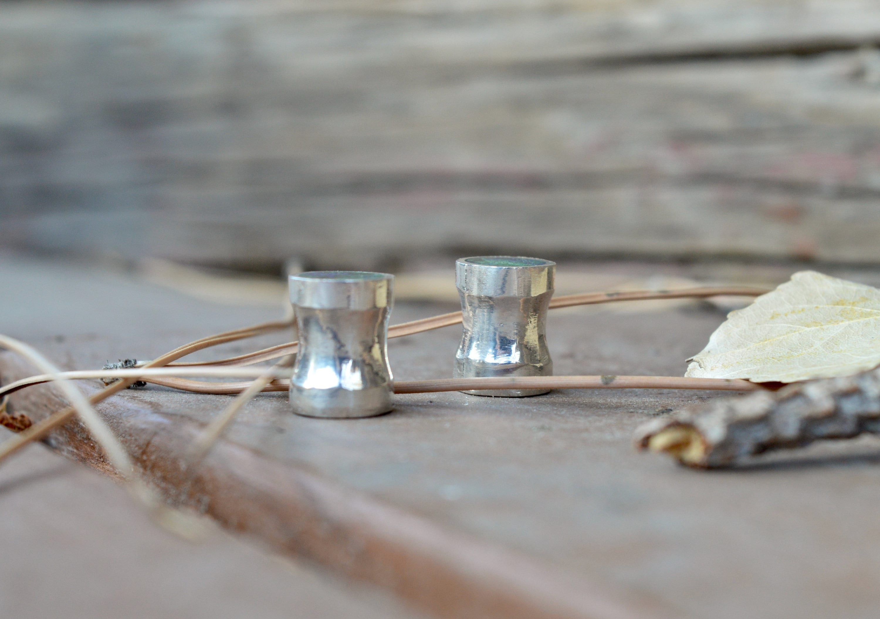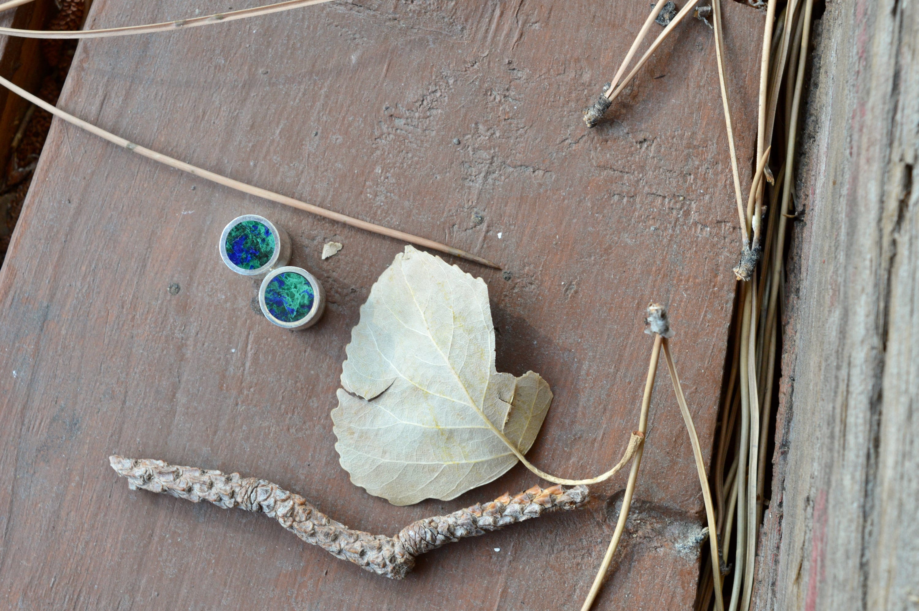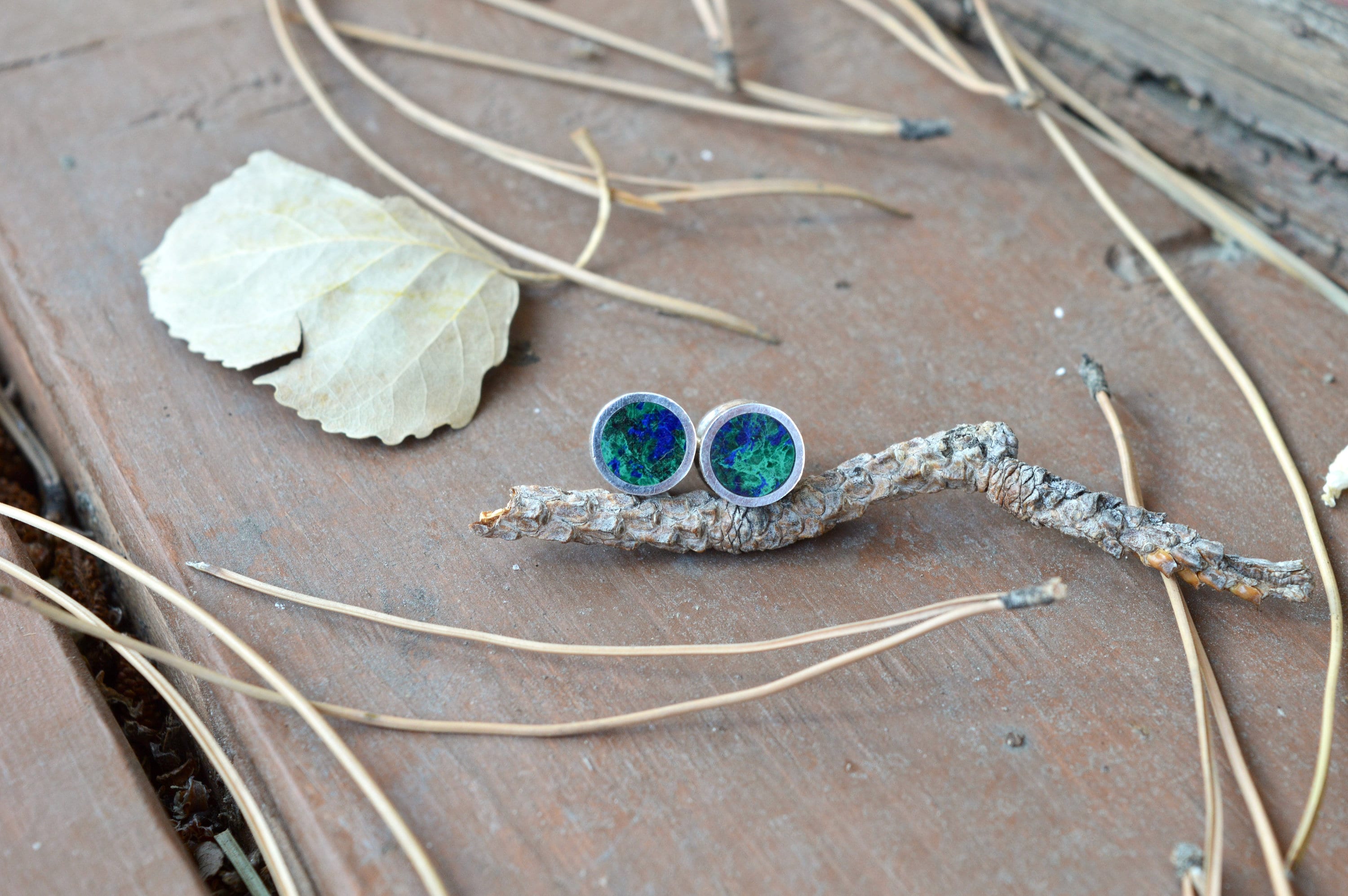 I had a customer reach out to me about making her Azurite Malachite plugs to match her beautiful ring. I am so glad I did. Just look at the gorgeous color of the blues and greens. Natural Azurite Malachite is so cool in how it shows multiple shades of green and blue in just one stone. Beautiful flared gauges of Azurite Malachite lined with sterling silver. The Azurite Malachite is flush with the silver on one face of each plug. As shown in the pictures, the other side is silver. Slight flare with the silver and small groove in the center fit to the gauge size.